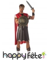 Le bouclier de 45,7 cm de diamètre est en plastique dorée en rappel du bronze des boucliers d'antan.