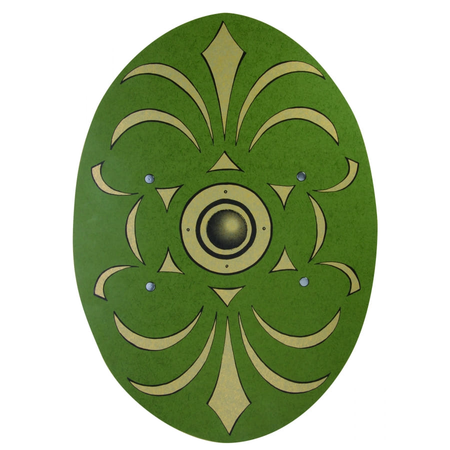 Nous vous proposons ce bouclier vert en bois de 35 x 49 cm de bonne qualité.