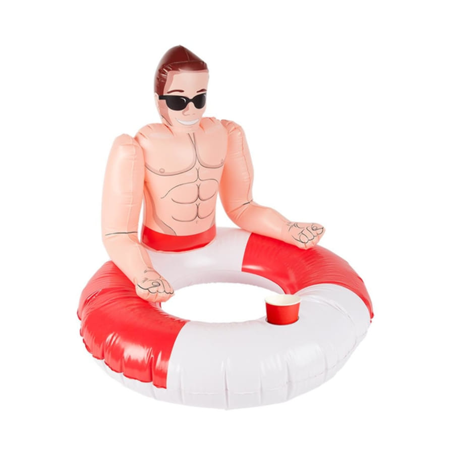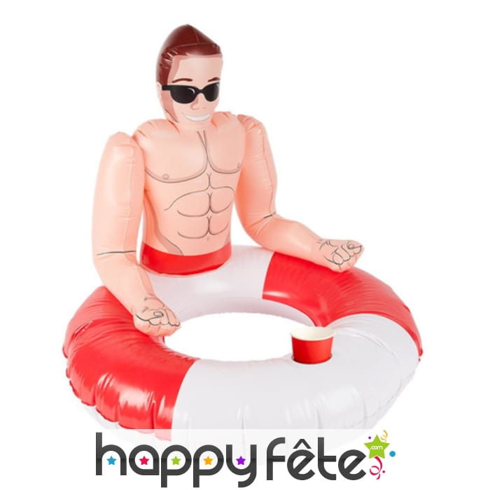 Mettez de l'humour dans une piscine party en optant pour la bouée gonflable maître-nageur blanc et rouge.