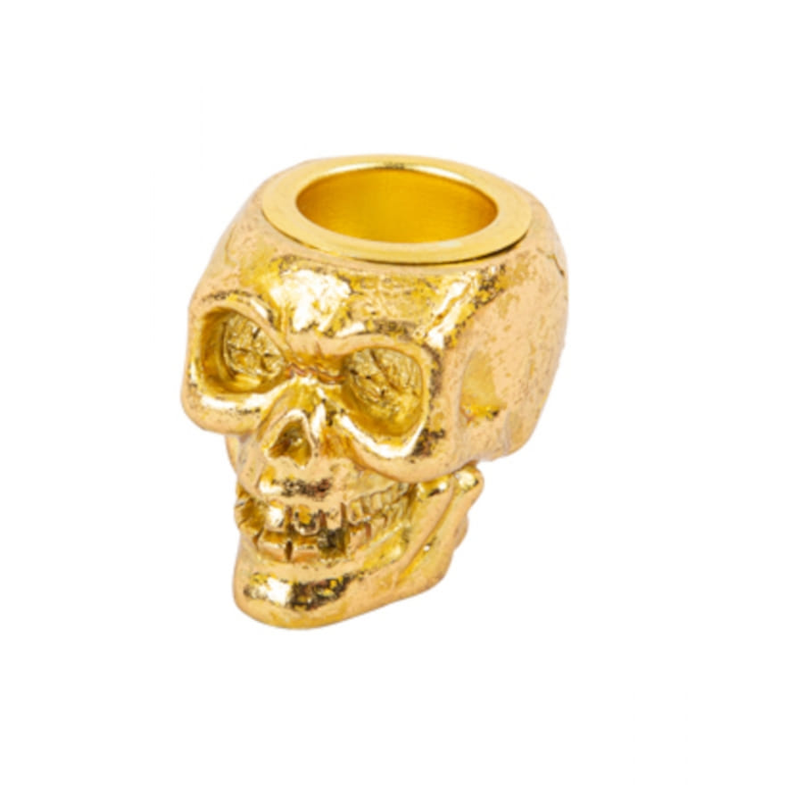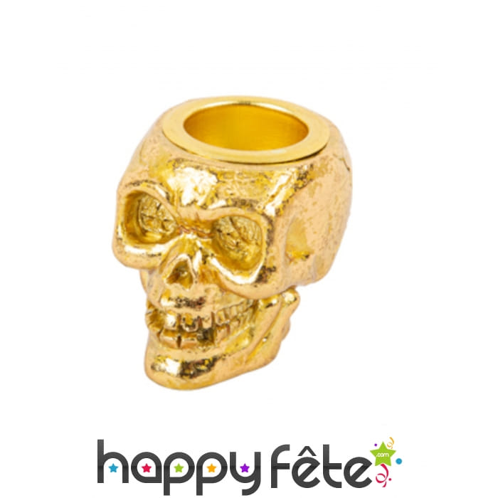 Que ce soit pour votre table de Halloween ou tout autre endroit, voici le bougeoir doré en forme de crâne.