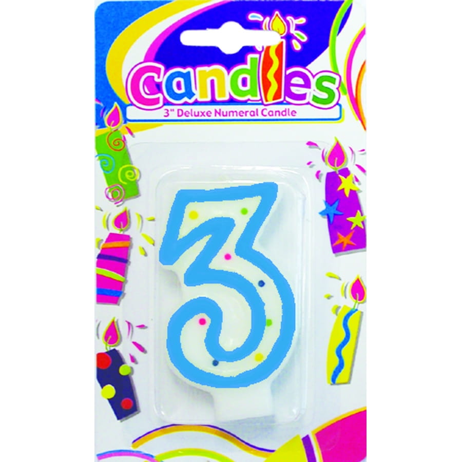 Immortalisez les 3 ans de votre enfant avec cette bougie d'anniversaire blanc et bleu en forme de chiffre 3. Cette bougie fera de votre gâteau d'anniversaire un vrai chef-d'oeuvre.