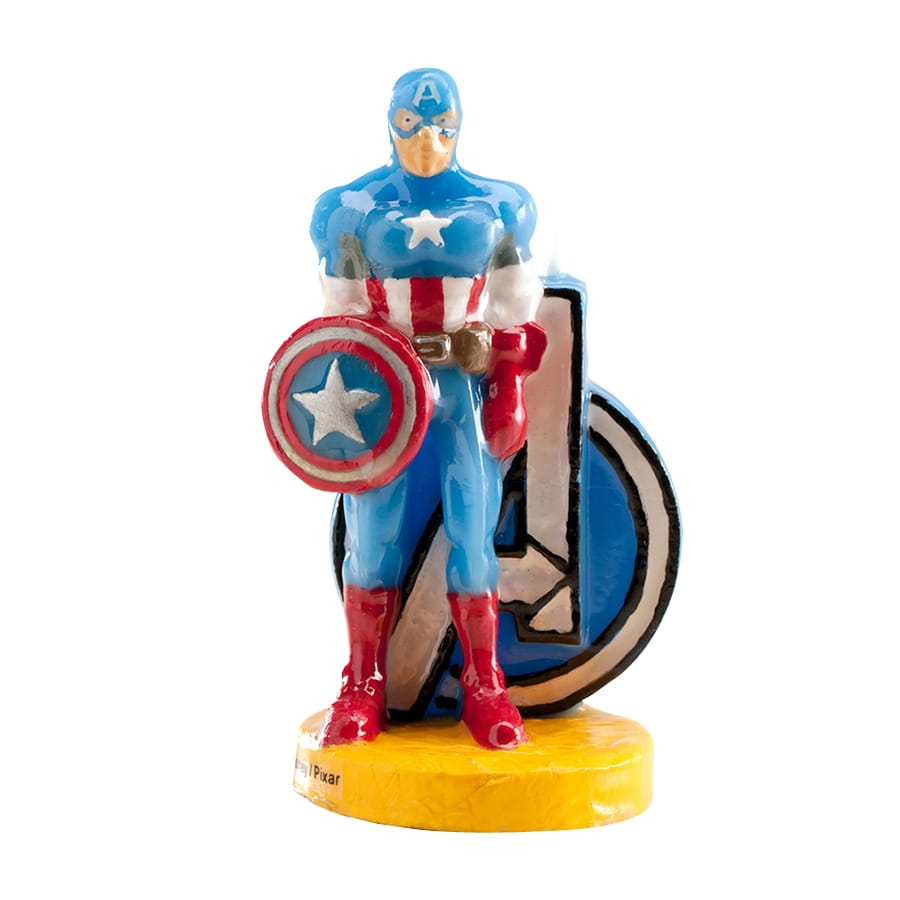Défendre les valeurs de son pays, en voilà une belle devise ! Fraîchement inspirée des aventures de votre super héros, cette bougie Captain América décorative bleue va vous faire craquer. Elle fait 8,5 cm de hauteur et reproduit un Captain America dans toute sa splendeur. Il porte son costume aux couleurs du drapeau américain avec son fameux bouclier indestructible.
