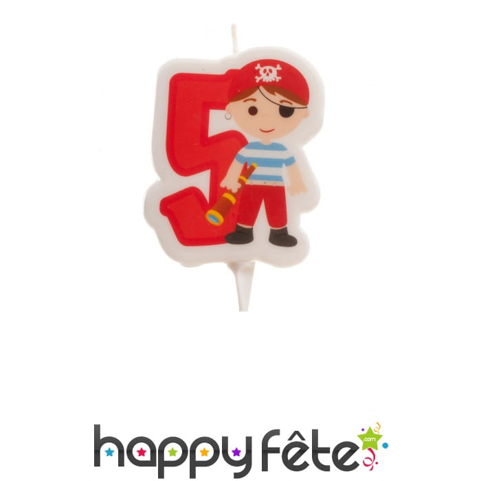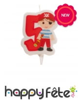 Assurément la touche finale de votre gâteau d'anniversaire, surprenez votre fils en plantant la bougie chiffre 5 pirate.