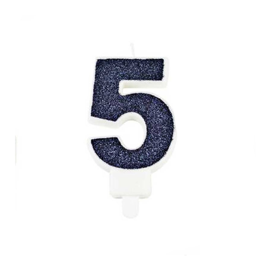 La bougie chiffre bleu marine pailletée mesure 7,3 cm.