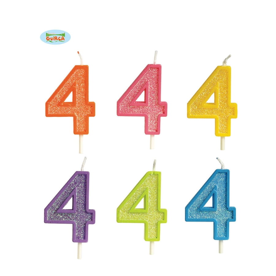 Apportez une touche colorée à votre gâteau d'anniversaire en la décorant de cette bougie chiffre de 4 cm couleurs assorties.