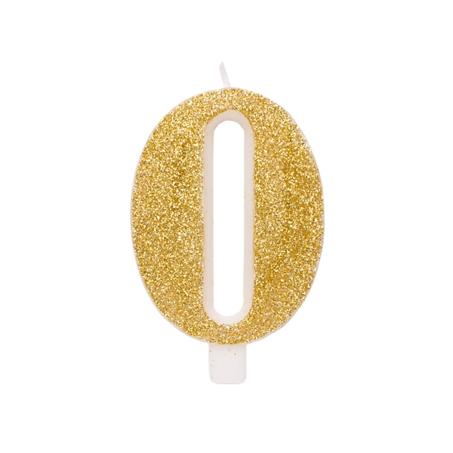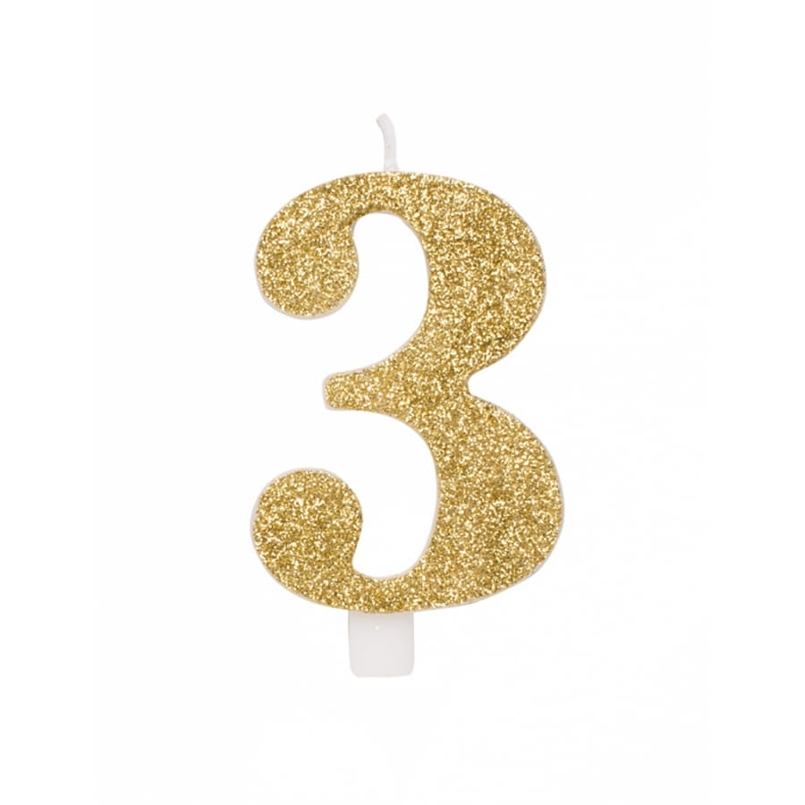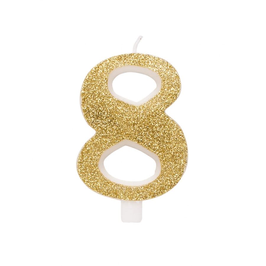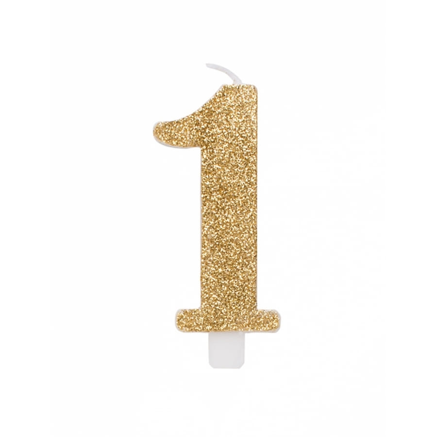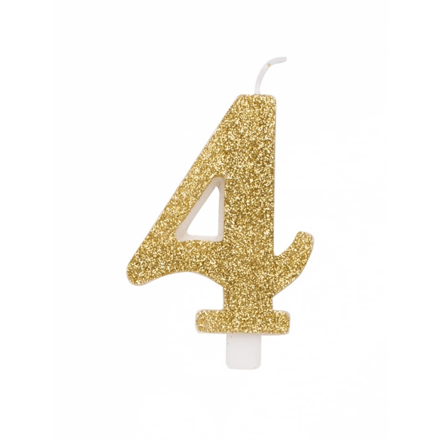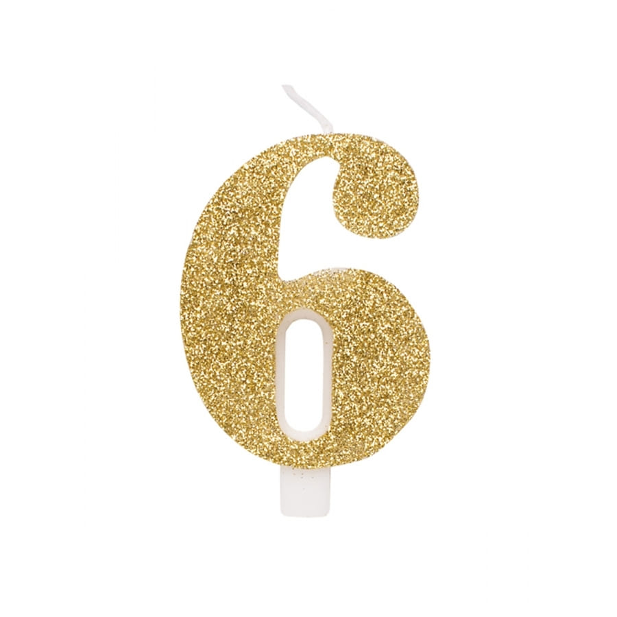 La bougie chiffre dorée à paillettes de 9,5 cm est munie d'un pic en plastique.