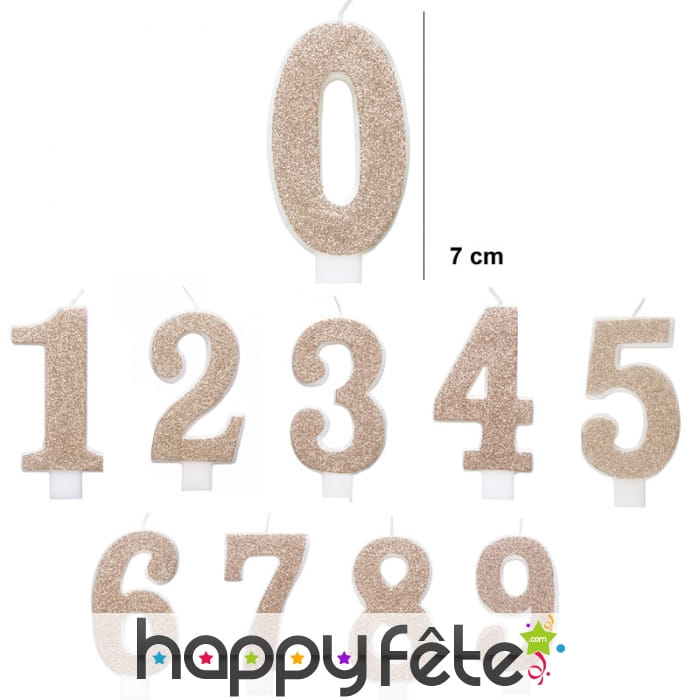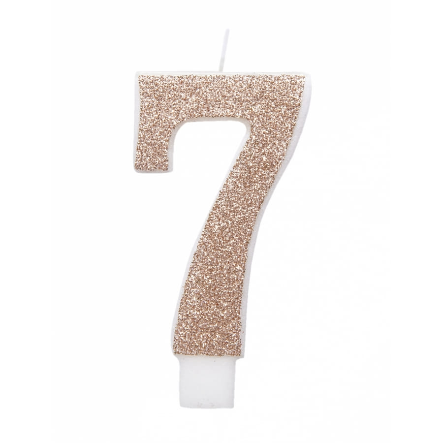 Offrez vous un anniversaire VIP or et bronze, en craquant pour la bougie chiffre dorée pailletée de 7 cm.