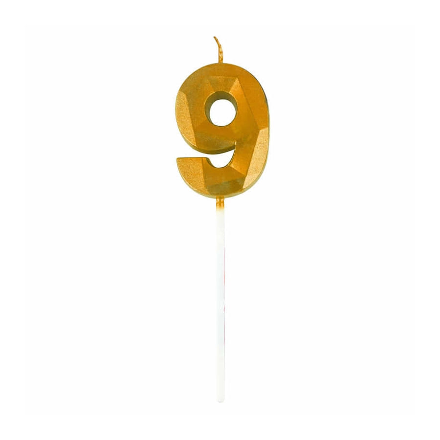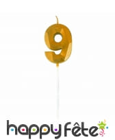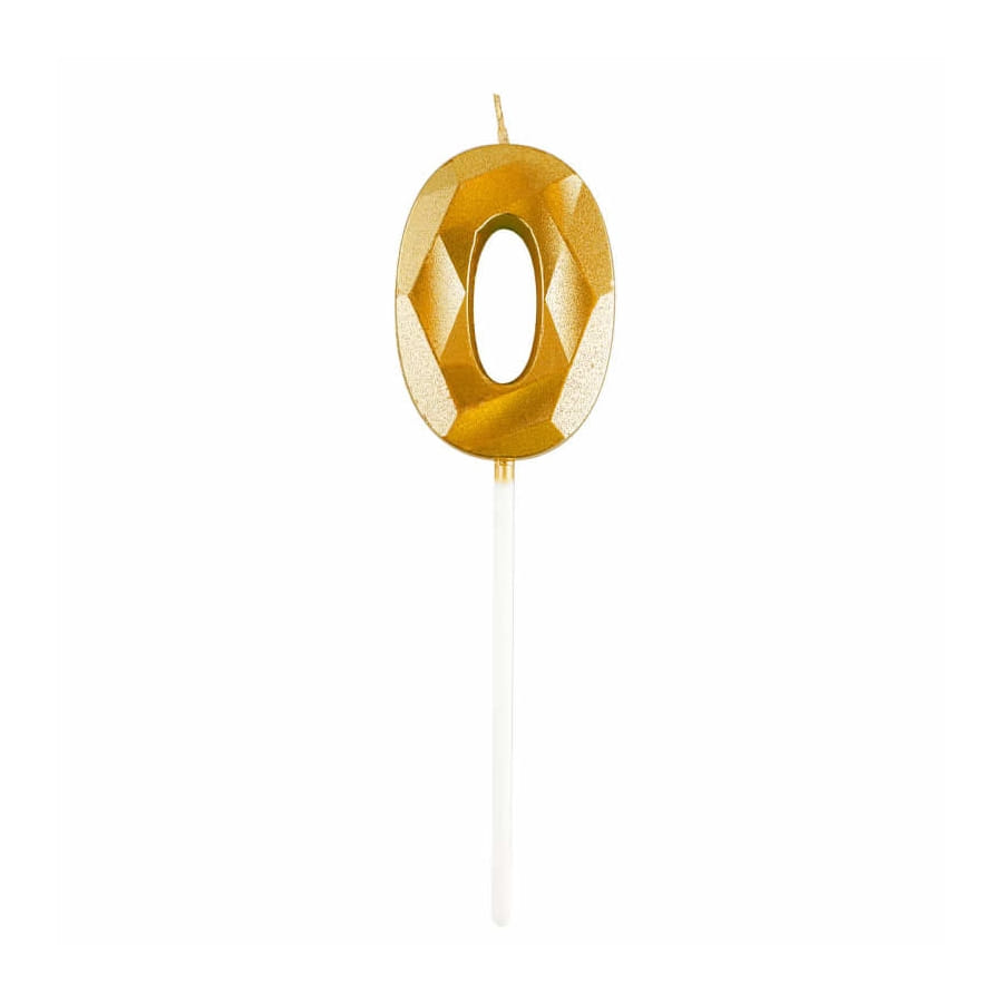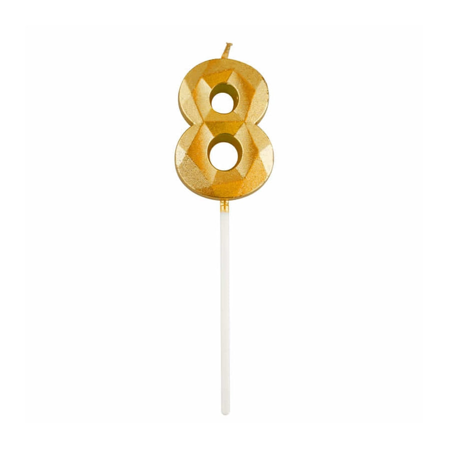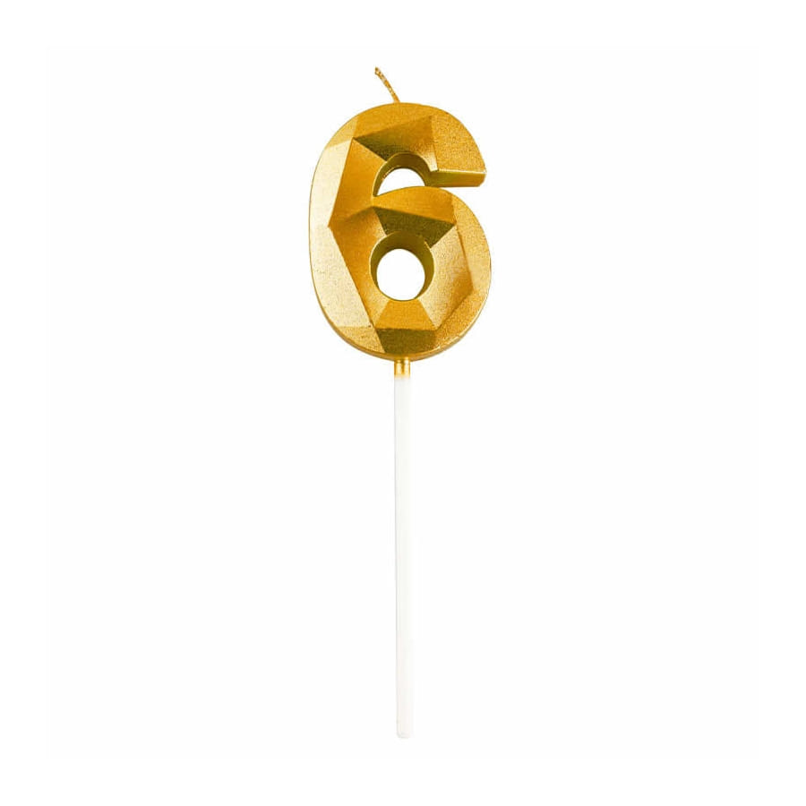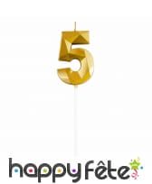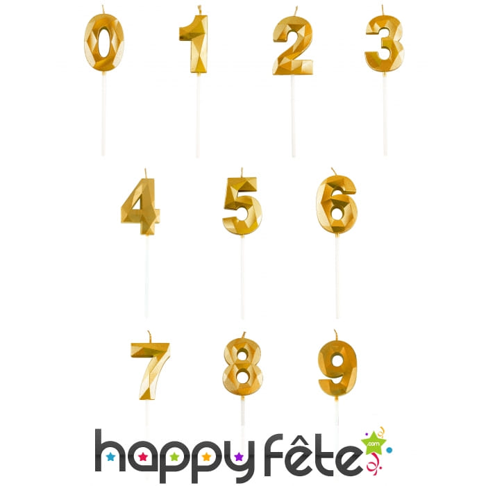 Cette bougie chiffre doré sur pic présente un aspect angulaire sur sa surface.