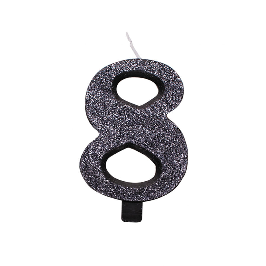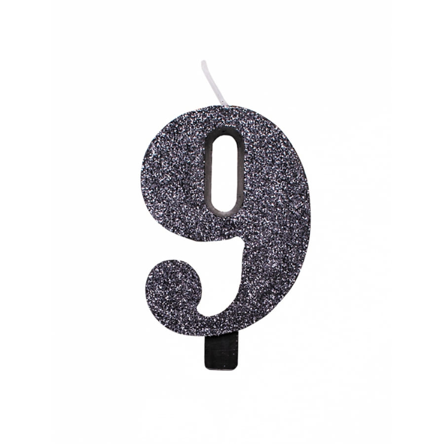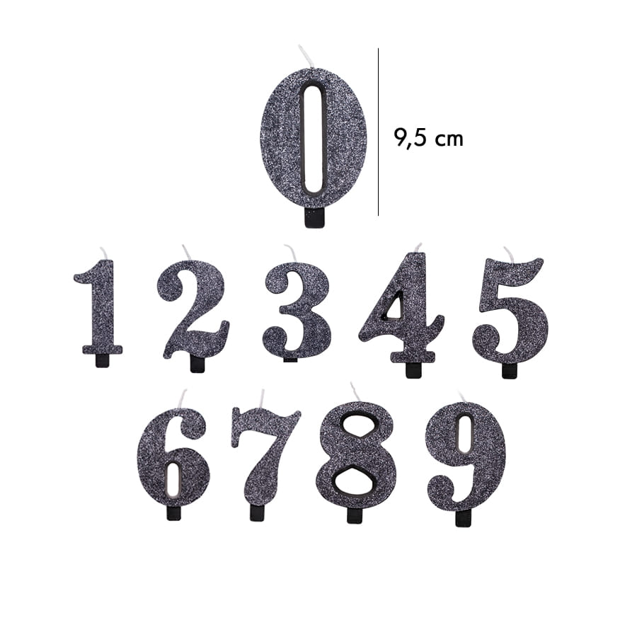 La bougie chiffre noire à paillettes de 9,5 cm est en cire.