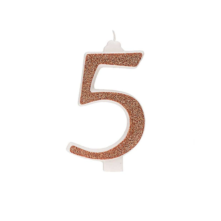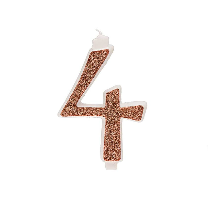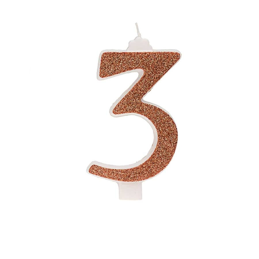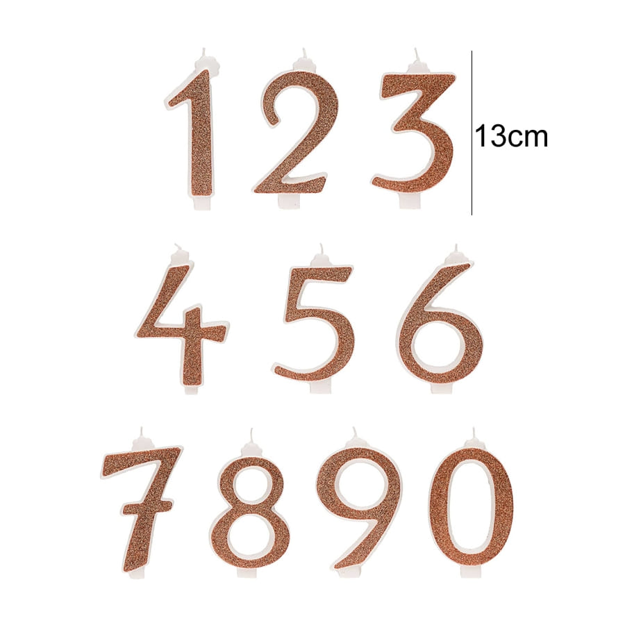 Il est question d'une bougie de couleur rose doré, qui présente la forme d'un chiffre.