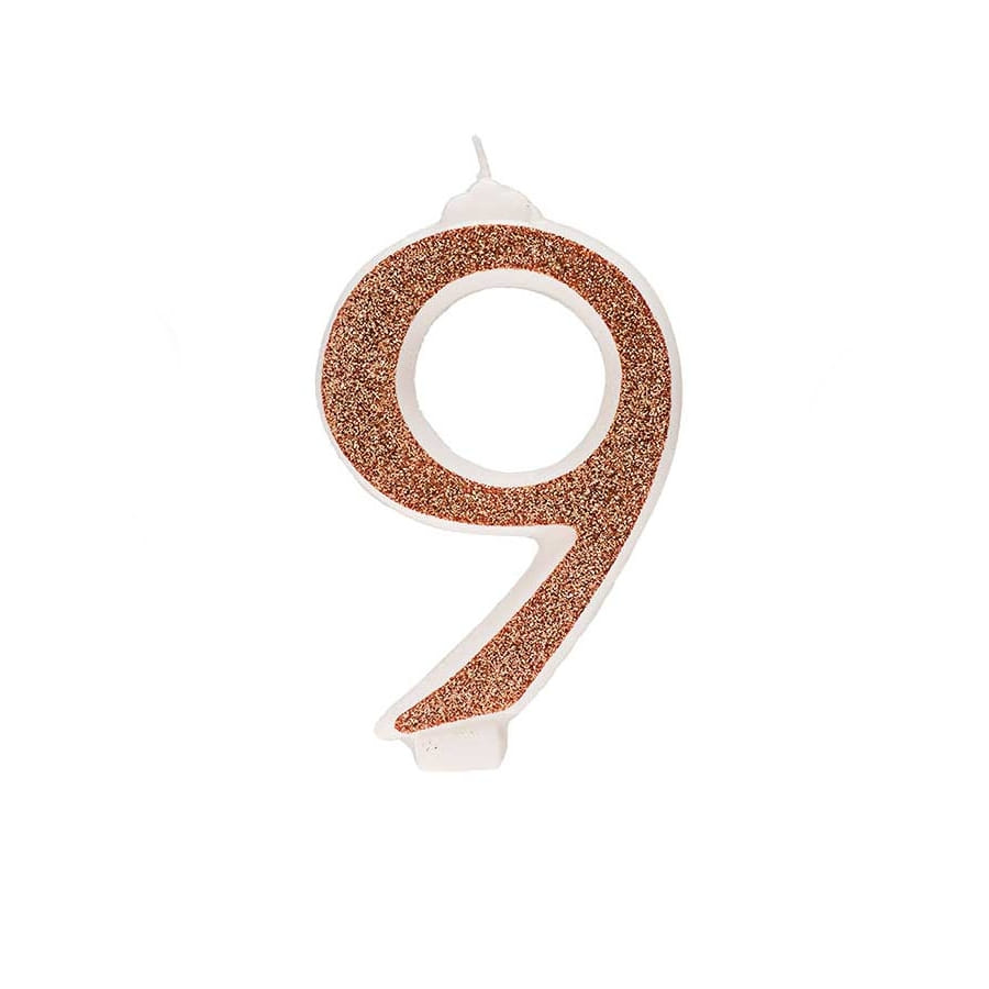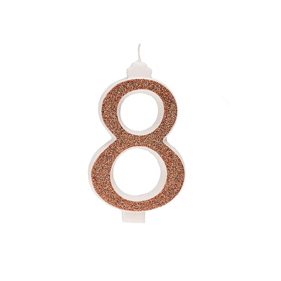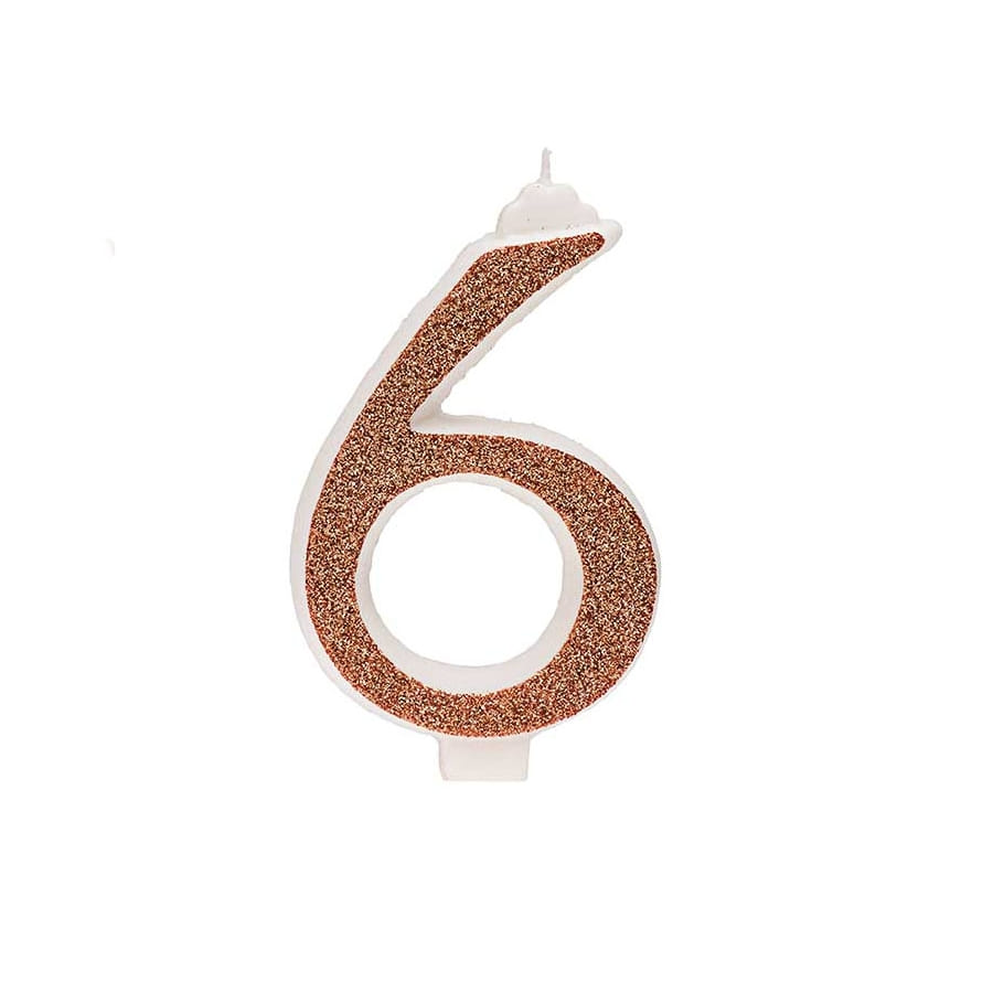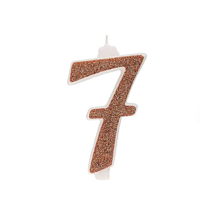 Il est question d'une bougie de couleur rose doré, qui présente la forme d'un chiffre.