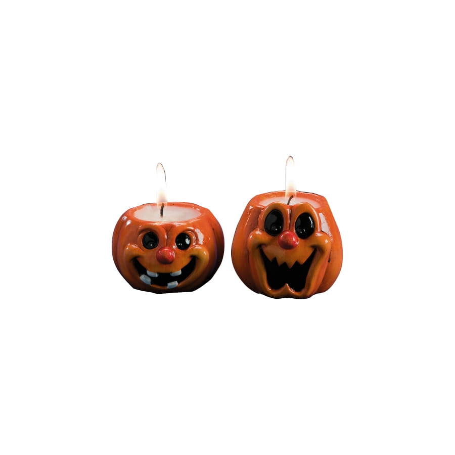 Bougie citrouille et porte-bougie en céramique de 6 centimètres, disponible en 2 modèles différents. Au moment de la commande, vous ne pourrez choisir ni le modèle ni la couleur. Vous recevrez le set comme présenté. Utilisez ces accessoires pour créér une décoration d'Halloween.