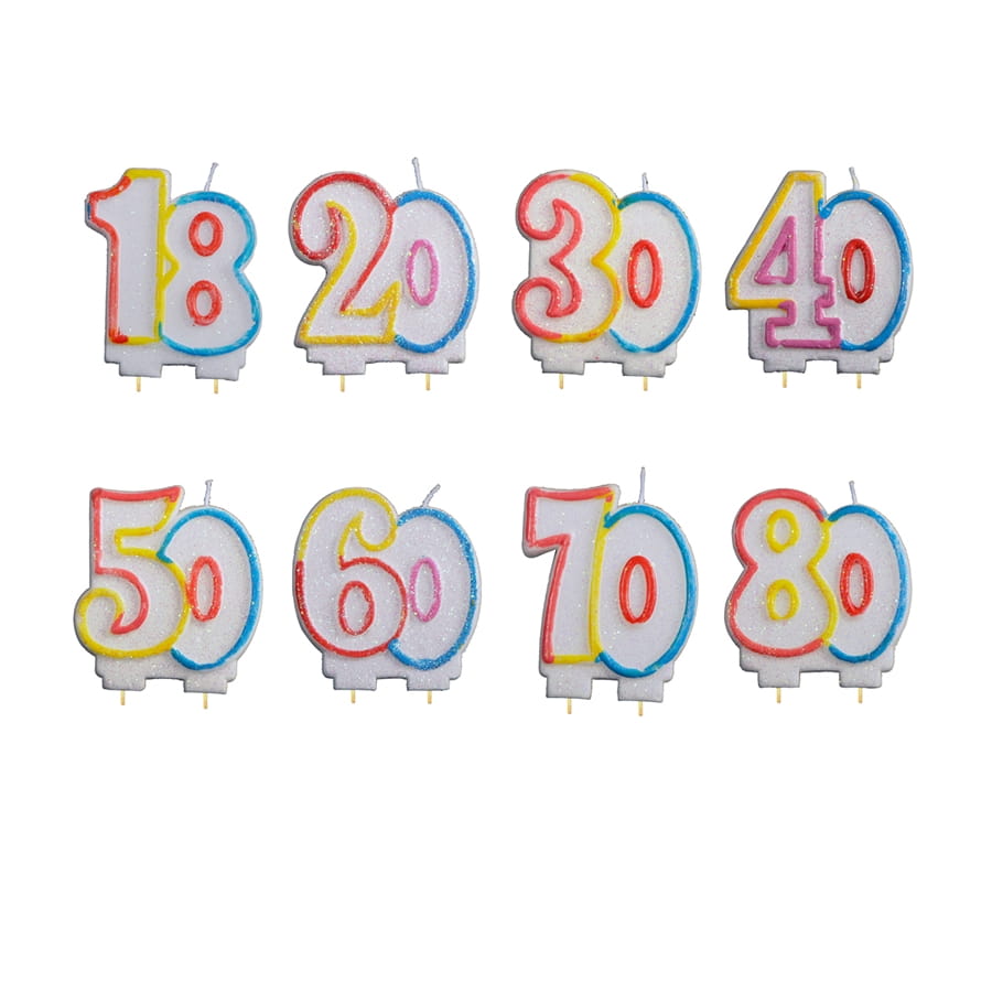 Nous avons des bougies, ici, qui vous épargneront de souffler de nombreuses bougies pour votre anniversaire. Dites-nous seulement l'âge que vous allez fêter parce que nous avons des bougies d'anniversaire nombre. Alors si vous fêtez vos 18 ans, vos 20 ans, vos 30 ans, vos 40 ans, vos 50 ans, vos 60 ans, vos 70 ans ou vos 80 ans, nous avons une bougie pour tous ses âges, ornée de multiples couleurs.