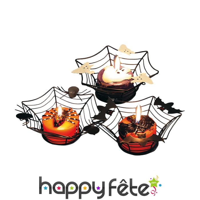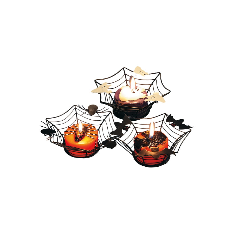 Bougie d'Halloween livrée dans un panier de métal assorti de 10 centimètres. Il existe 3 modèles de bougies dont une orange et noire en forme d'araignée, une autre de la même couleur mais en forme de chauve-souris et une troisième noire et blanche en forme de fantôme. Il est impossible de choisir ni le modèle ni la couleur de la bougie, et vous recevrez une de celles mentionnées. Elles créeront l'ambiance rêvée pour Halloween!