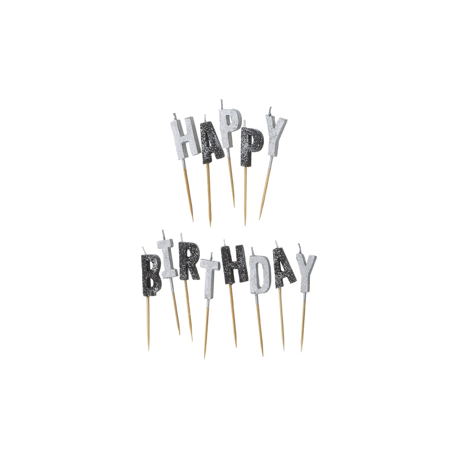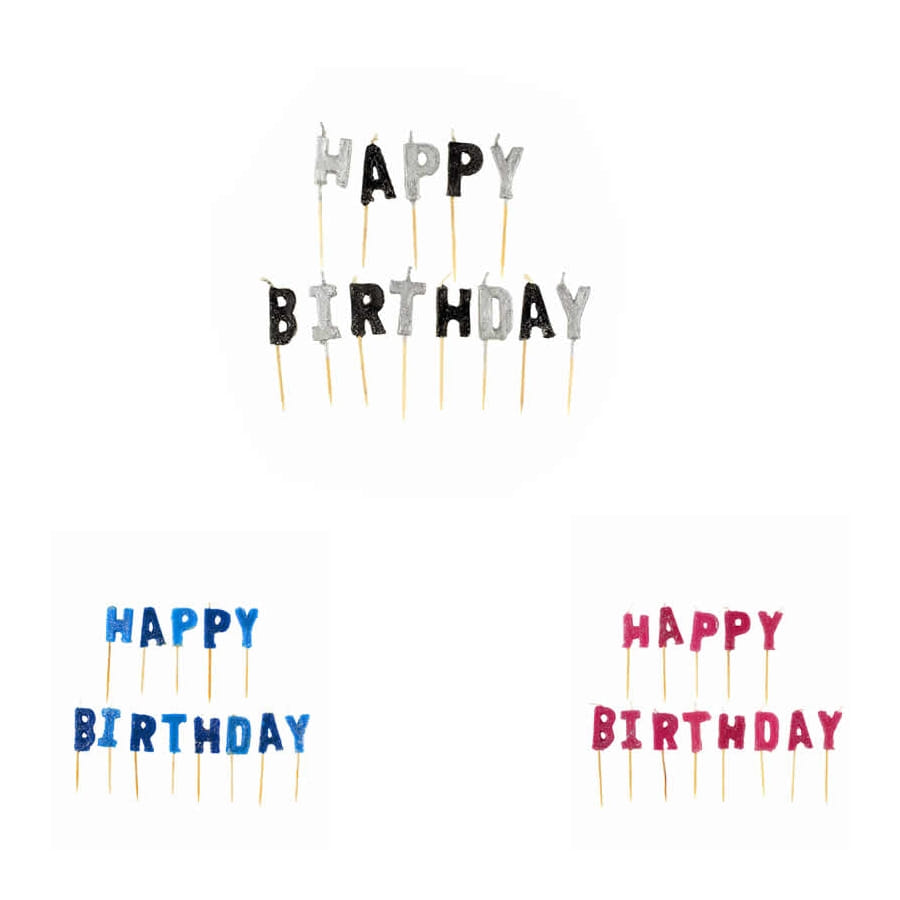 Quel plaisir de pouvoir déguster un bon gâteau à l'occasion d'un anniversaire ! Mais avant de découper la délicieuse pâtisserie, il va falloir souffler les bougies. L'article bougie lettres Happy Birthday sur pic est constitué par 13 bougies. Chacune d'elles est composée d'un petit pic en bois accompagné d'une lettre aux reflets pailletés. L'ensemble forme l'inscription "happy birthday". Vous aurez trois couleurs au choix : gris, bleu ou rose.