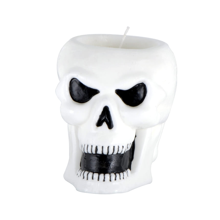 Dans l'univers de la magie, la bougie est un accessoire symbolique qui permet d'ouvrir une porte entre les différents mondes. C'est pour cela qu'elle se décline en différentes formes au jour des morts. Pour la déco, elle est proposée en tête de squelette blanche. Ainsi, cet accessoire n'a pas besoin de bougeoir pour adhérer votre intérieur. Sa taille est équivaut à 10cm.