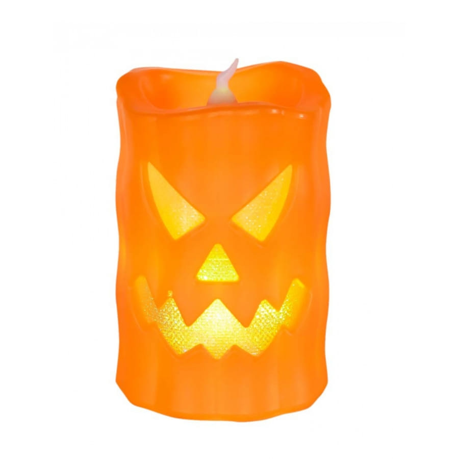 Craquez pour la bougie visage de citrouille Led de 10 cm et compléter la déco terrifiante de votre prochaine nuit d'Halloween.