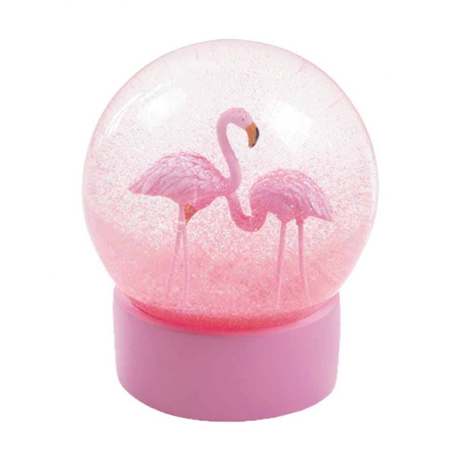 La boule à neige rose avec 2 flamants roses de 13 cm agrémentera à merveille la décoration de table à l'occasion d'une soirée sur le thème exotique.