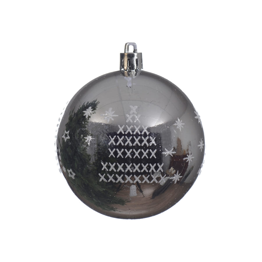 Les boules de Noël n'en finissent pas de nous impressionner ! Cette année, équipez votre sapin d'une magnifique boule argentée de Noël sapin et flocons 8cm. Ce modèle en plastique est de couleur argentée et il est agrémenté de petits motifs en croix formant un sapin, ainsi que de flocons de neige.