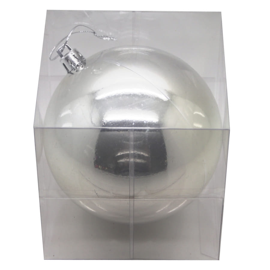 Si vous souhaitez décorer votre sapin avec des couleurs argentées, cette boule de noël est faite pour vous. Faite de plastique argenté brillant, elle mesure 10 centimètres de diamètre. Elle est livrée dans une boîte en PVC.