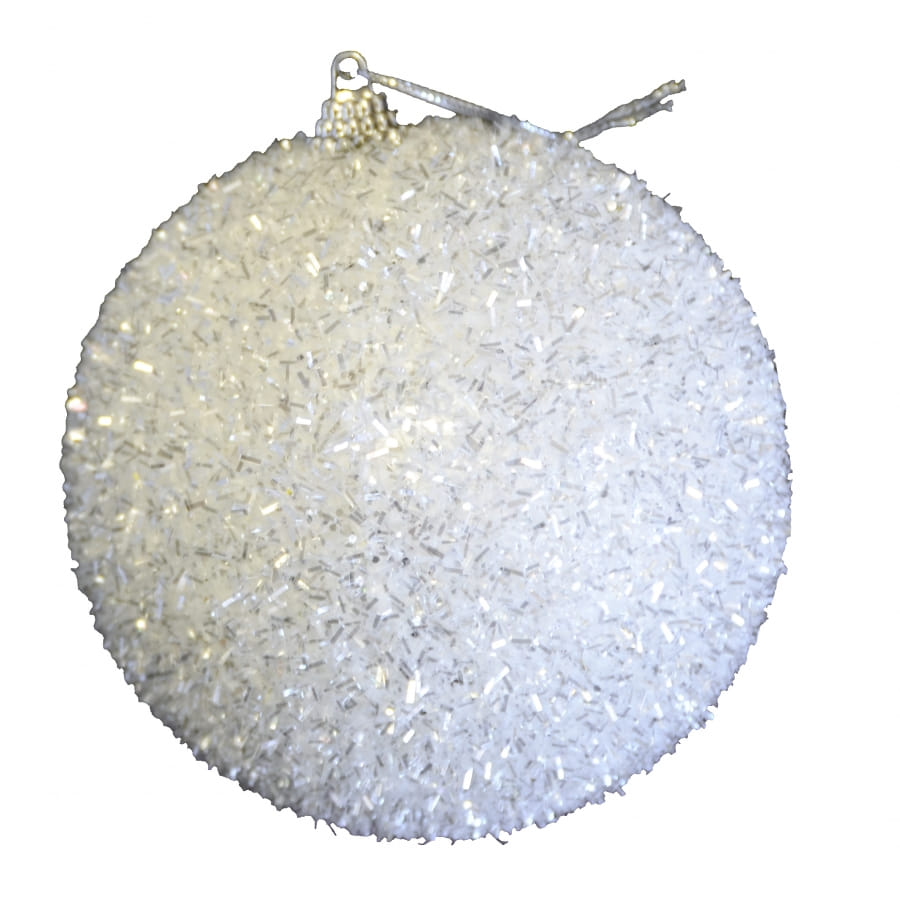 De la classe et du chic! Voilà ce qu'inspire cette petite merveille de boule de Noël. Son bel aspect vient de sa couleur blanche irisée garnie de paillettes. Cette boule de Noël ouatée, de 10 cm de diamètre, attirera bien des regards si vous savez le placer à un endroit tout particulier de votre sapin ou de votre cheminée.