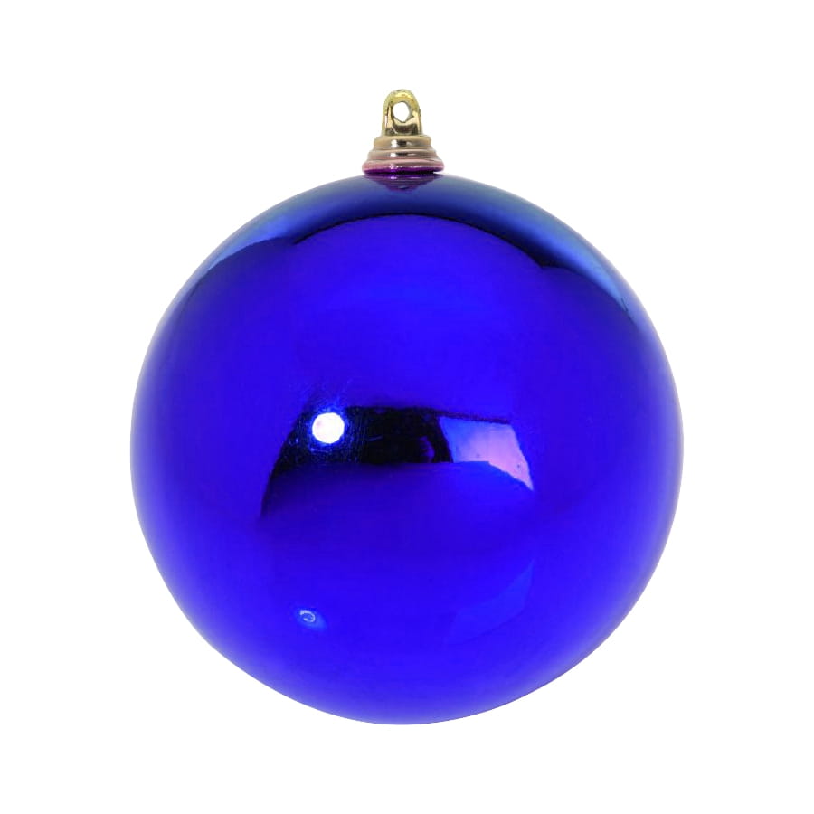 Boule de Noël en plastique brillant de couleur bleu uni. Cet accessoire de décoration mesure 14 centimètres de diamètre. Ajoutez-la à votre décoration de sapin et vous verrez comme elle le rendra encore plus beau.