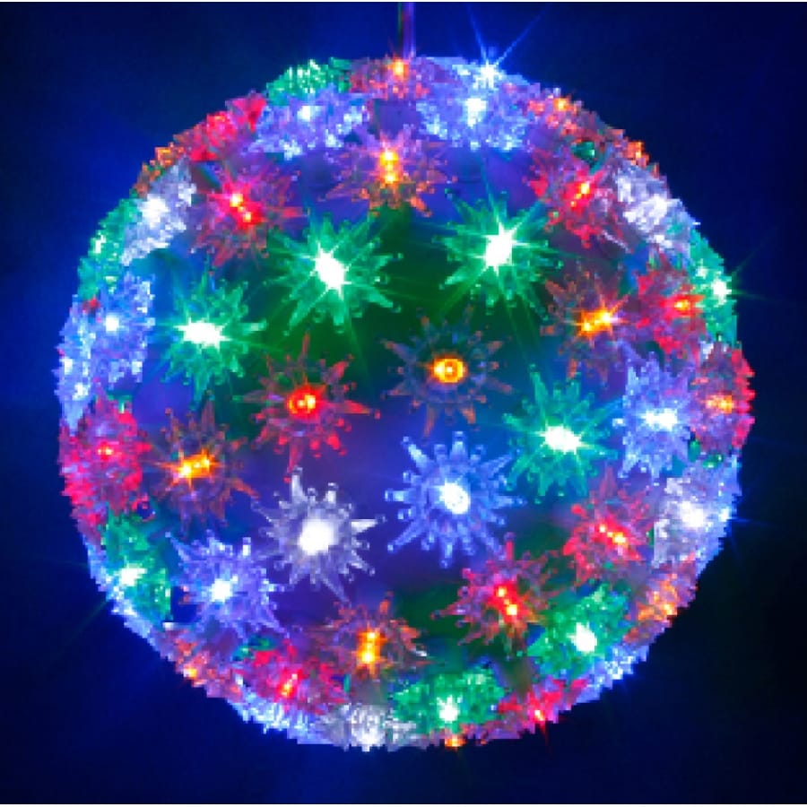 Boule lumineuse et clignotante multicolore avec 100 Led. Cet accessoire mesure 15 centimètres de diamètre et est spécifiquement destinée à être utilisée à l'intérieur. Cette boule animera une fête de mariage, d'anniversaire ou de Nouvel An sans aucun problème!