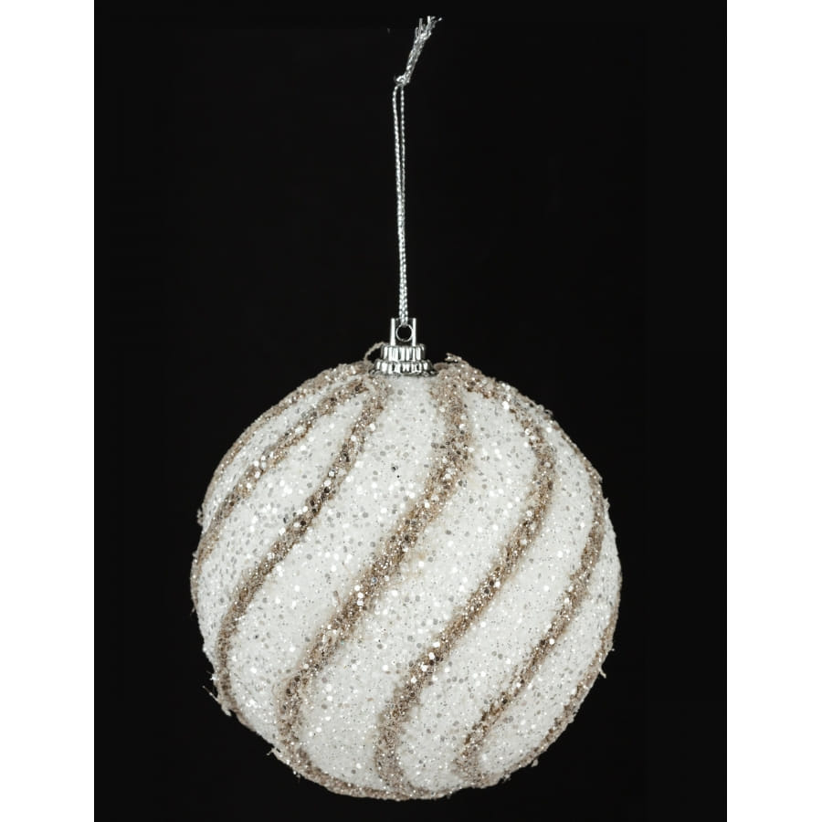 Dès le premier regard, cette boule de Noël vous envoûte avec ses paillettes étincelantes et ses spirales élégantes dans des tons blancs et dorés. C'est comme si elle venait tout droit d'un conte de fées, prête à illuminer votre intérieur et à émerveiller petits et grands.