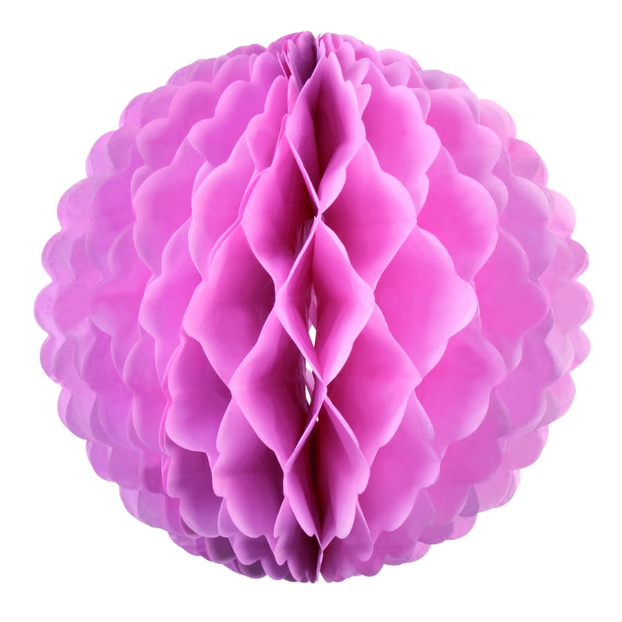 Cette boule de papier alvéolée ignifugée vous pourrez le placer chez vous ou durant une fête pour faire une belle décoration. Cette boule de papier est de couleur rose, elle fait 25 centimètre.