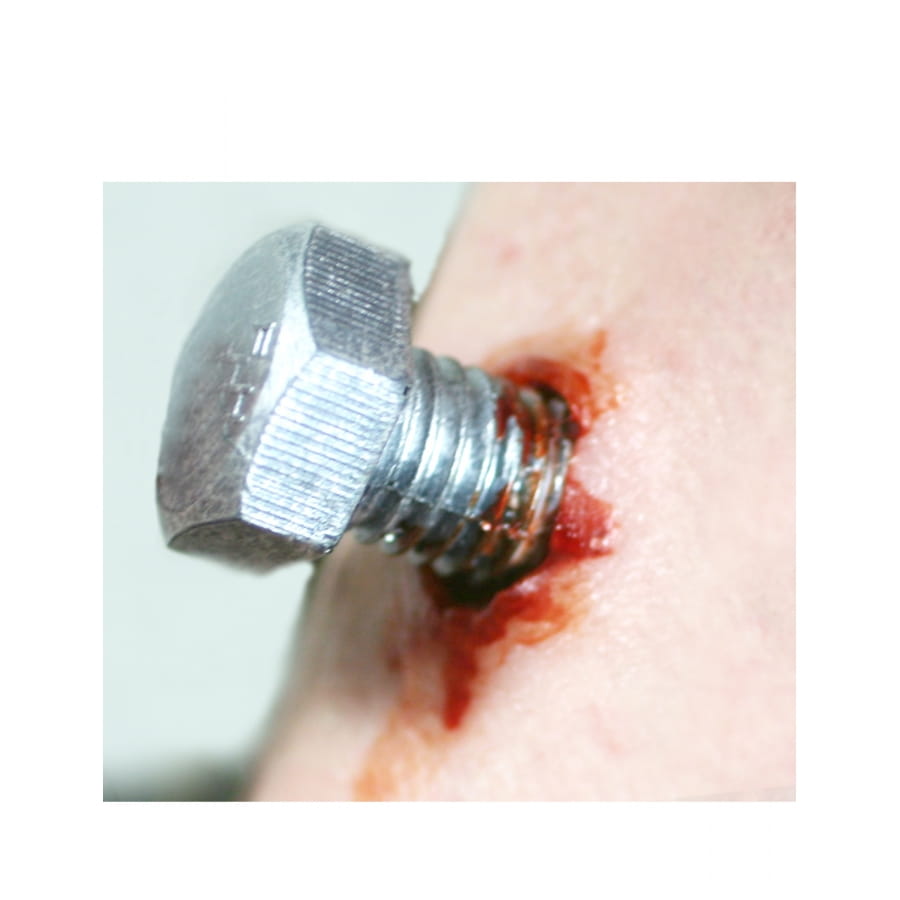 Cet accessoire représente un boulon argenté qui transperce votre peau.