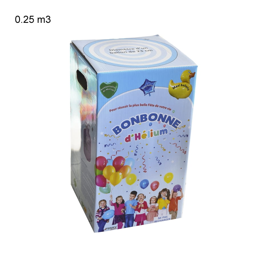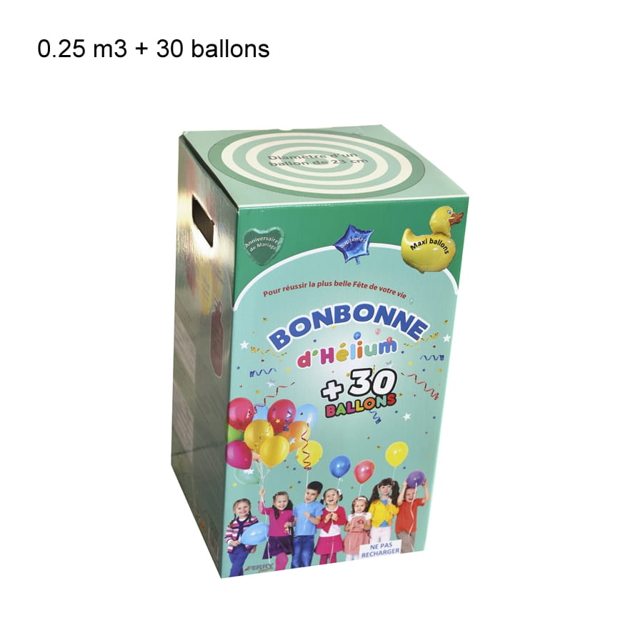 La bouteille de 0.25 mètres cubes est vendues avec ou sans ballons (30 au total).