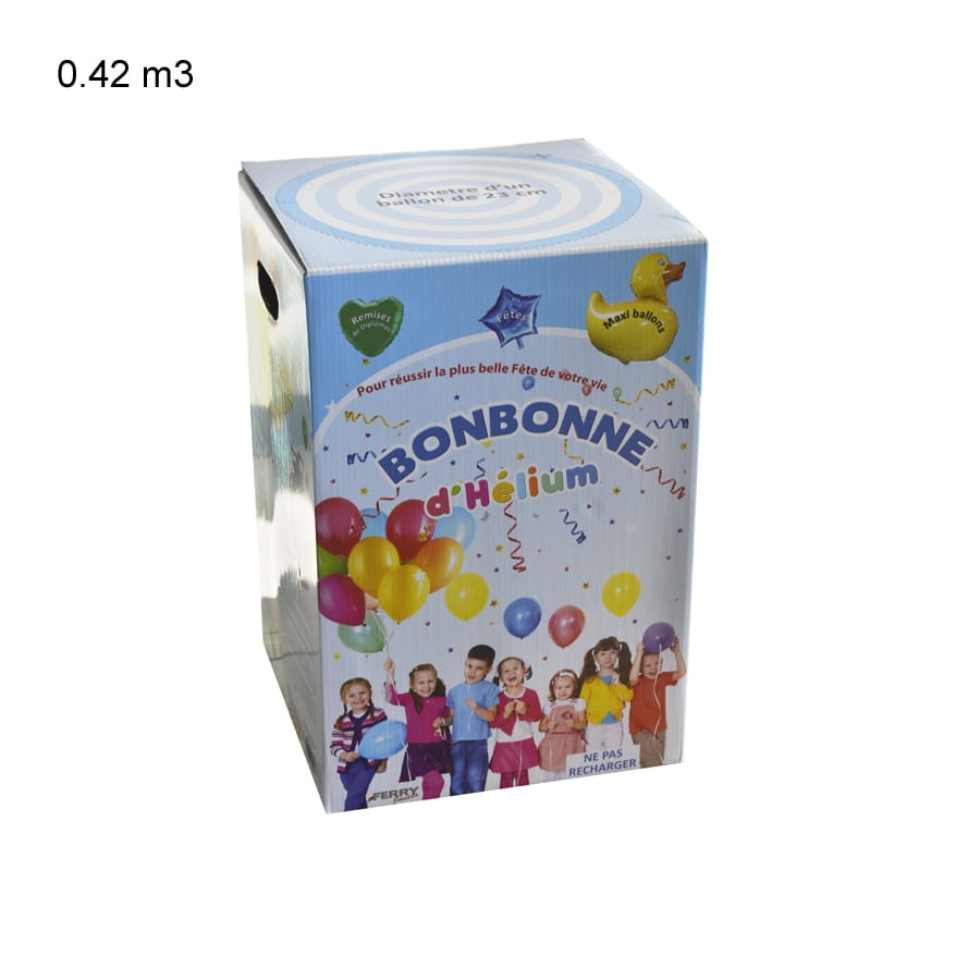 La bouteille de 0.42 mètres cubes d'hélium conviendra pour gonfler environs 50 ballons de 23cm de diamètre.