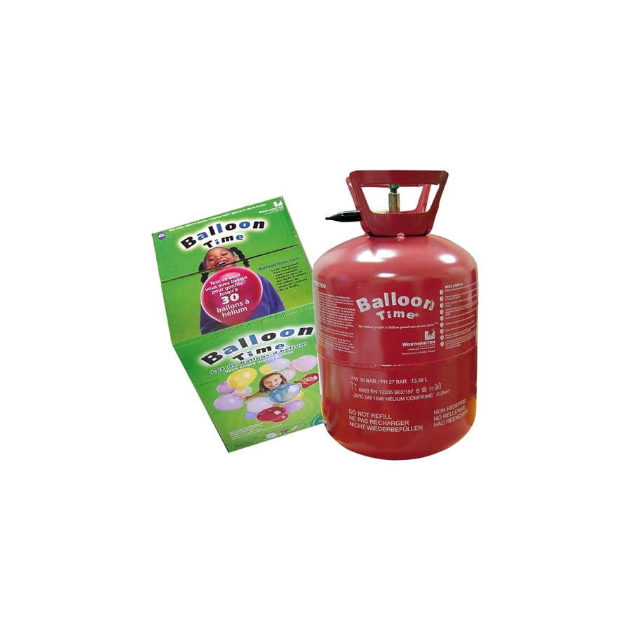 Ce kit pour gonfler des ballons contient une bouteille rouge d'hélium ayant la capacité de gonfler environ 50 ballons ( chacun mesurant un diamètre de 23 centimètres). Une fois gonflés, ces ballons tiendront 7 heures en moyenne. La bouteille est non-rechargeable. Pour en disposer correctement, il vous faudra laisser le robinet ouvert et la porter à un centre de recyclage pour acier. Elle mesure 45 centimètres de hauteur pour un diamètre de 30 centimètres.