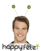 Cette décoration ultra réaliste est en réalité un serre-tête surmontée d'une bouteille verte transparente habillée d'étiquette qui font penser à une marque de bière.