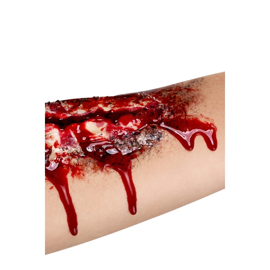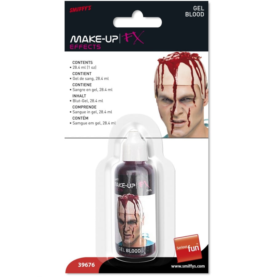 Bouteille de sang en matière visqueuse, de couleur rouge. Ceci vous permettra de rehausser votre déguisement de zombie, de victime, de vampire ou autres, pour Halloween.