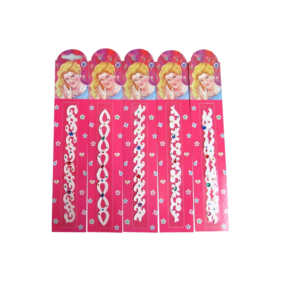 Imaginez un bracelet des plus stylés qui colle à la peau ! Craquez pour le modèle bracelet autocollante tatouage pour enfant. Mesdemoiselles, ce fabuleux bijou est fait pour vous. Un blister contient un bracelet de couleur blanche, avec un design très spécial et quelques fausses pierres disposées dessus. Le modèle peut varier mais celui que vous recevrez dépendra du stock disponible.