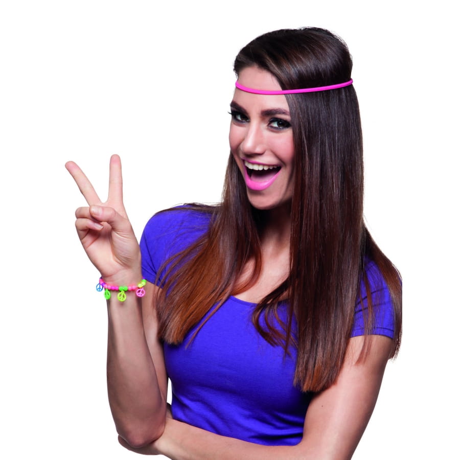 Entrez dans la mouvance des années 60 et faites partie du décor hippie de la soirée en arborant ce magnifique bracelet coloré peace and love.