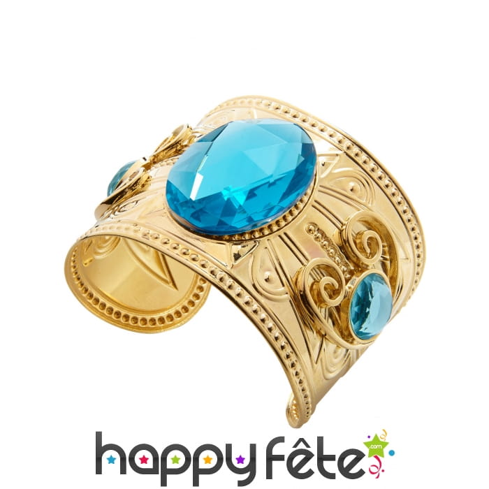Il est orné de fausses pierres précieuses bleues fixées en relief.