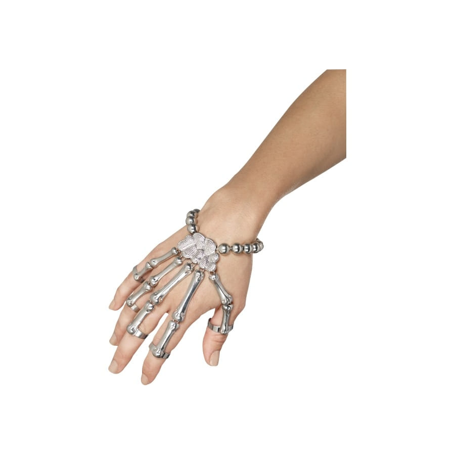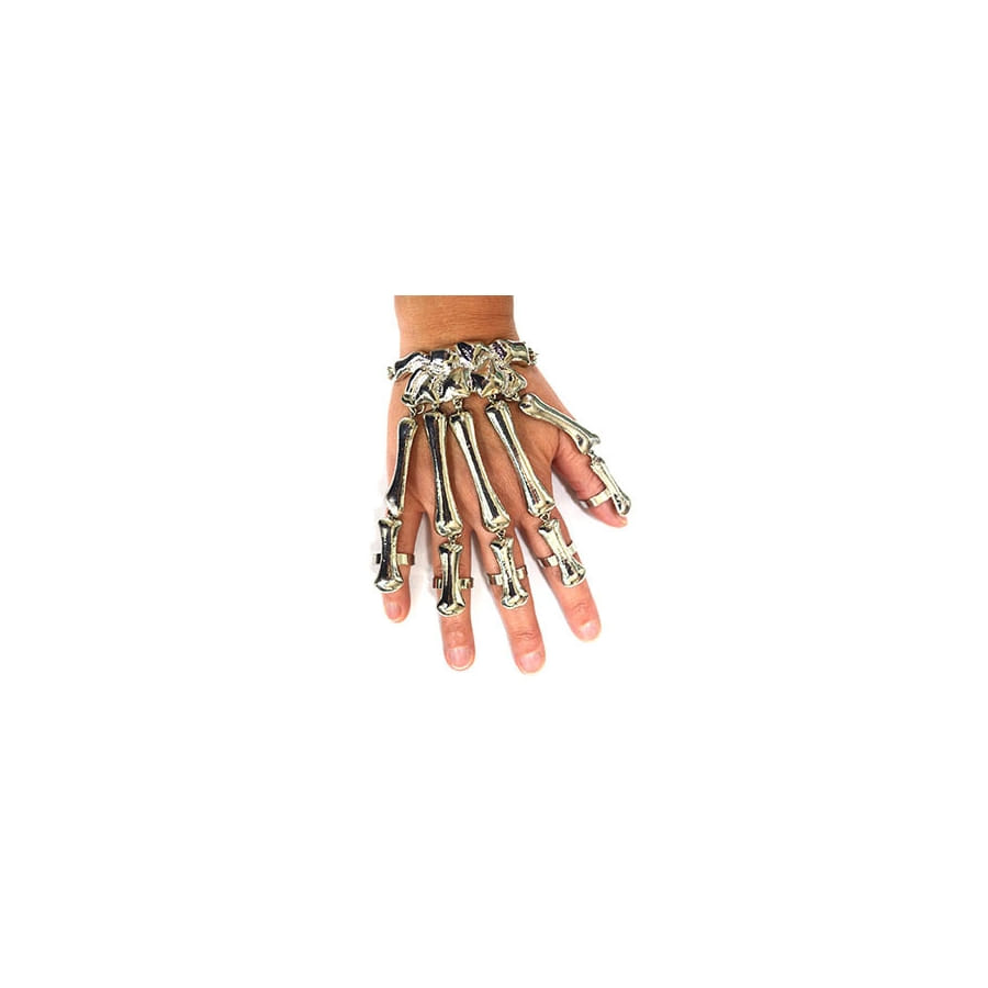 À l'occasion d'une soirée d'Halloween ou d'une fête sur le thème Magie et sorcellerie, nous vous proposons un accessoire très original. Voici un joli bracelet de main squelette argentée représentant la forme d'un squelette de main. Pour assurer un bon maintien, ce bracelet pour femme est doté de bagues à l'extrémité de chaque doigt du squelette qui recouvre votre main.
