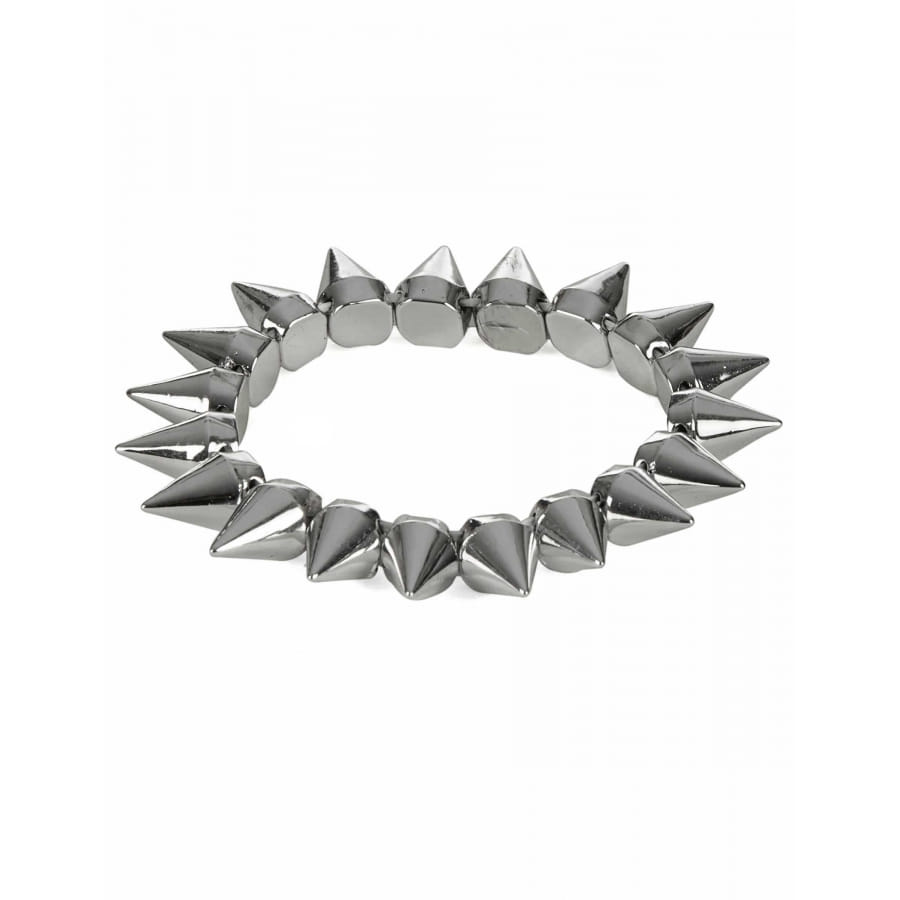 Le bracelet de piques argentés est un accessoire unisexe pour adulte.