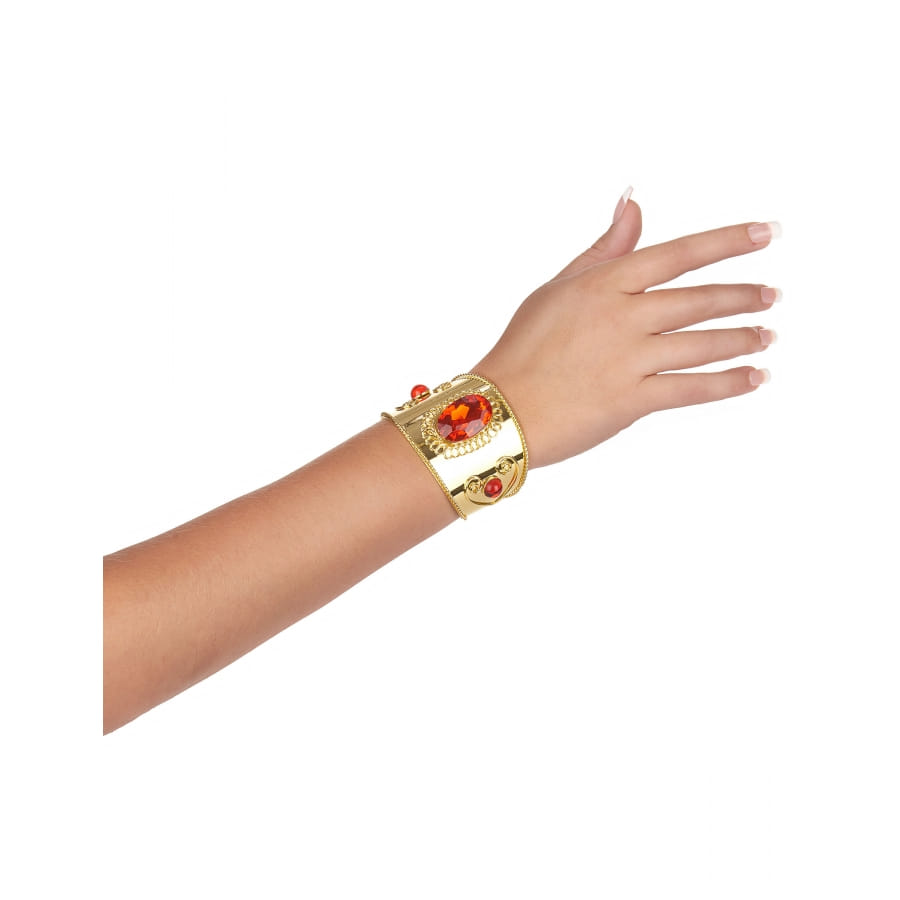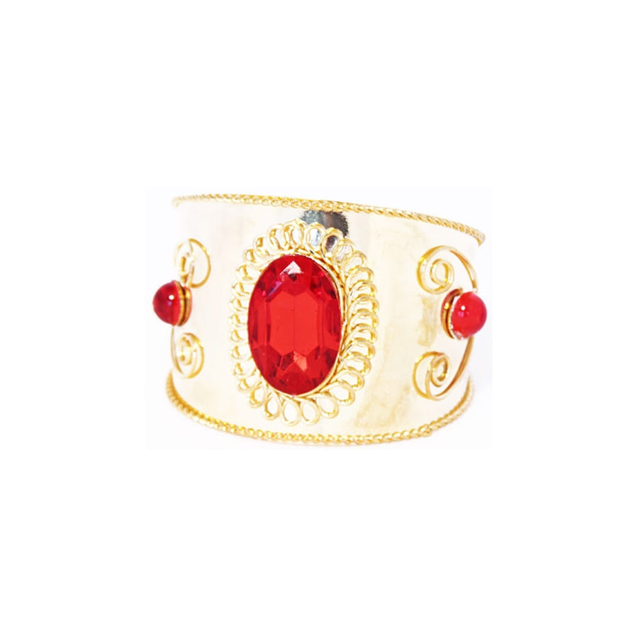 Ce bracelet doré serti de pierres rouges accompagnera votre déguisement le temps d'une soirée à thème oriental, mille et une nuits...