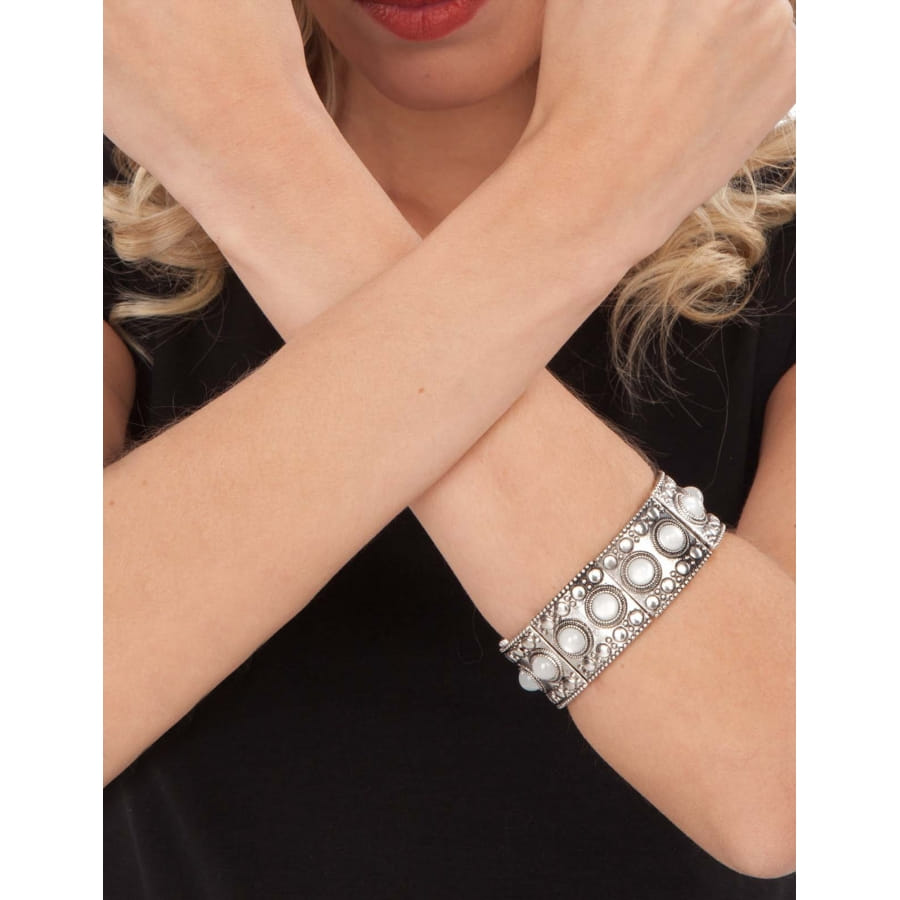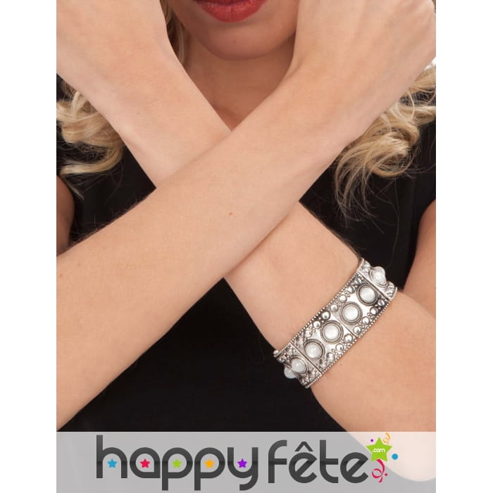 Finalisez une tenue du moyen-âge et changez-vous en personnage historique grâce au bracelet médiévale argenté avec pierres blanches.