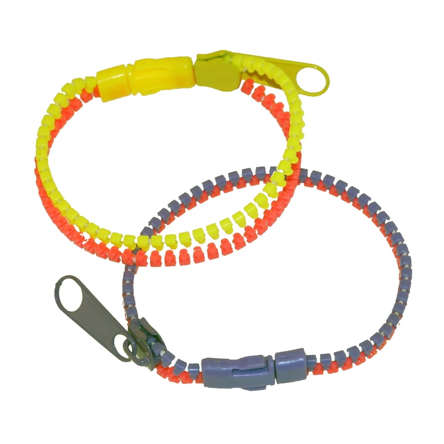 Choisissez un bijou spécial pour embellir vos tenues. Mamans et fillettes pourront toutes l'adopter. Il s'agit d'un bracelet zip bicolore. Inspiré des fermetures éclair, ce bracelet original se porte avec tout et n'importe quoi. Il fera également un fabuleux lot de stand de kermesse. Il se vend à l'unité et vous n'aurez pas le choix de la couleur à la commande.