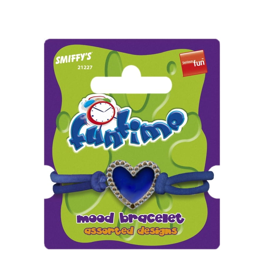 Bracelet humeur pour fille, qui change de couleur en fonction de votre humeur. Le bracelet est de couleur bleue à l'origine et également orné d'une superbe pierre en forme de coeur. Ceci est un cadeau idéal pour votre fille!