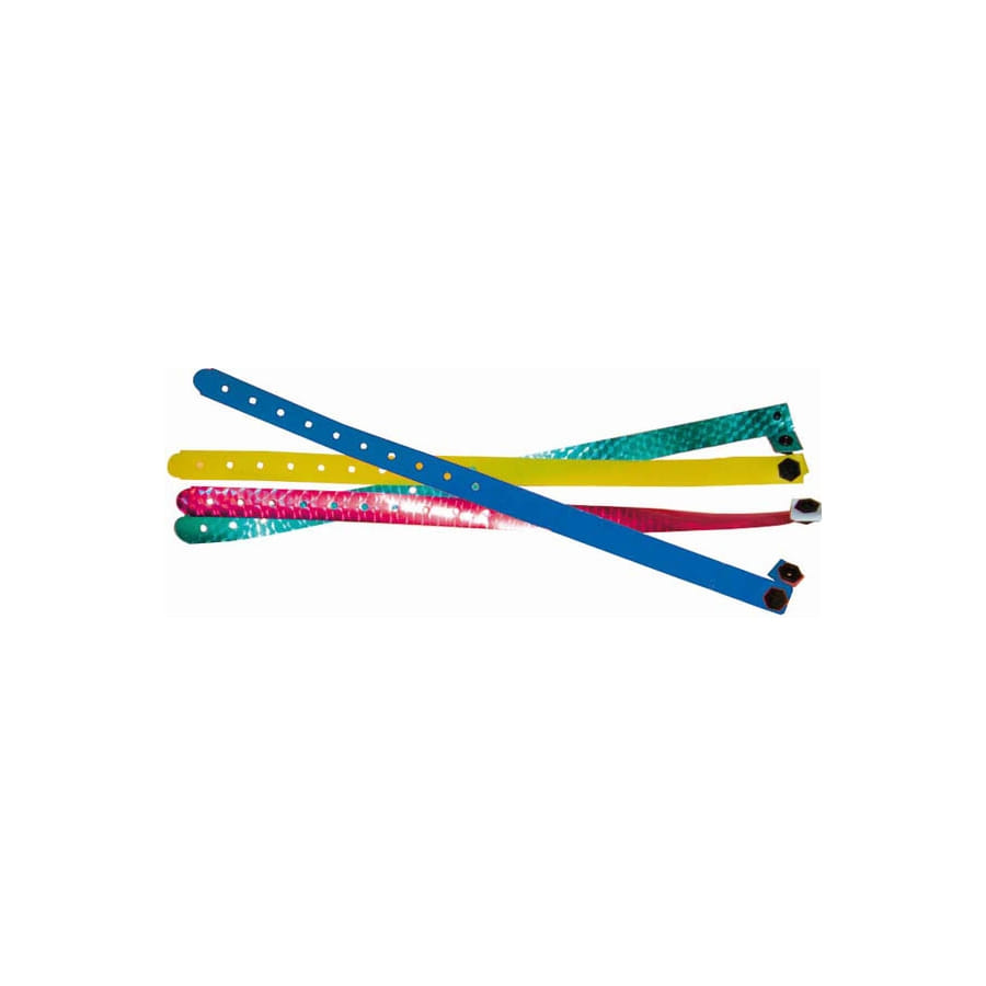 Soyez à la pointe de la mode avec ces jolis bracelets inviolables. De plus, avec les différentes couleurs proposées, vous pourriez en mettre un différent tous les jours, assorti à vos vêtements. Ils ont l'aspect d’une ceinture, mais se ferment avec une presse. Les couleurs proposées sont le blanc, le bleu, le jaune, l’orange, le rose, le rouge ou le vert, vous pourriez faire votre choix parmi ces couleurs ou les choisir toutes. Ces bracelets ont 12 mm de largeur et sont vendus par lot de 100.