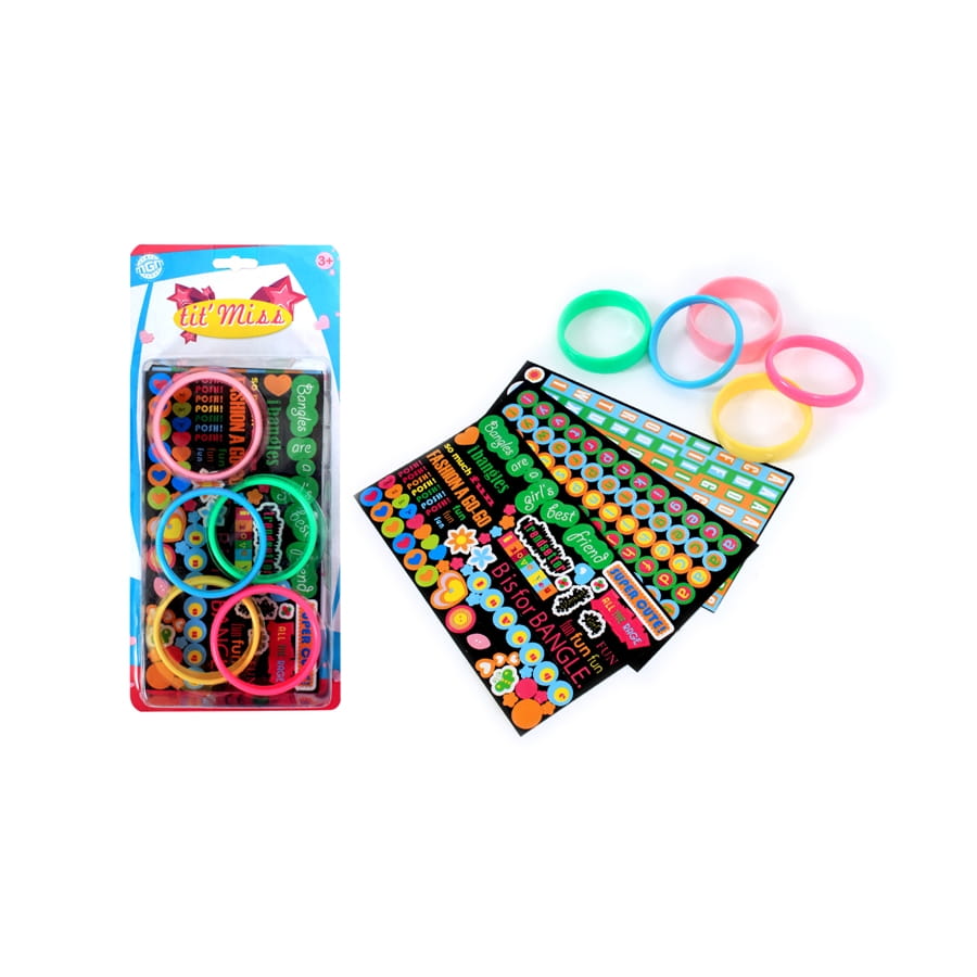 Kit composé de bracelets et de stickers multicolores, pour les décorer. Avec ces stickers à plusieurs motifs, votre petite fille pourra créer de beaux bracelets uniques en leur genre. Vous n'aurez pas le choix des couleurs à la commande, elles peuvent être différentes de la photo, et dépendent de la disponibilité en stock.