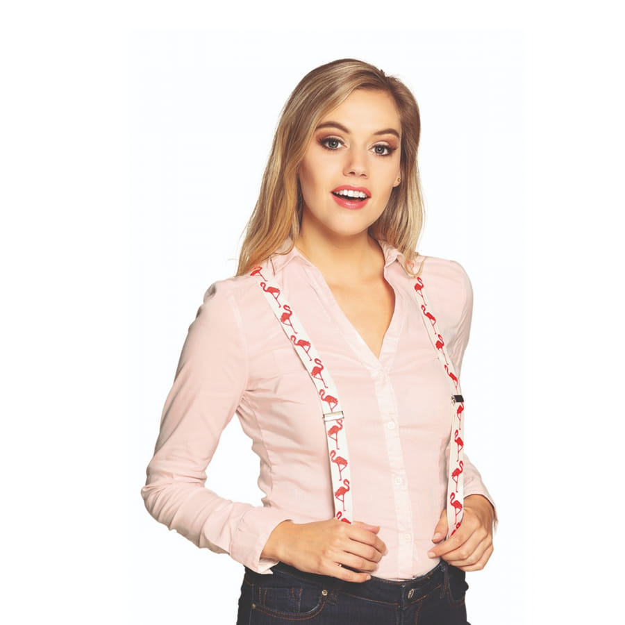 Accessoirisez une tenue pour lui donner un arrière-goût hyper exotique grâce aux bretelles imprimé flamant rose pour adulte.