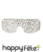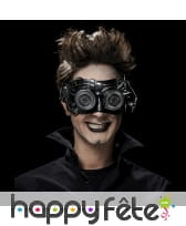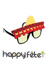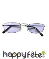 - Une paire de lunettes avec de grands verres dotés d'une teinte noire. Le cadre est multicolore.