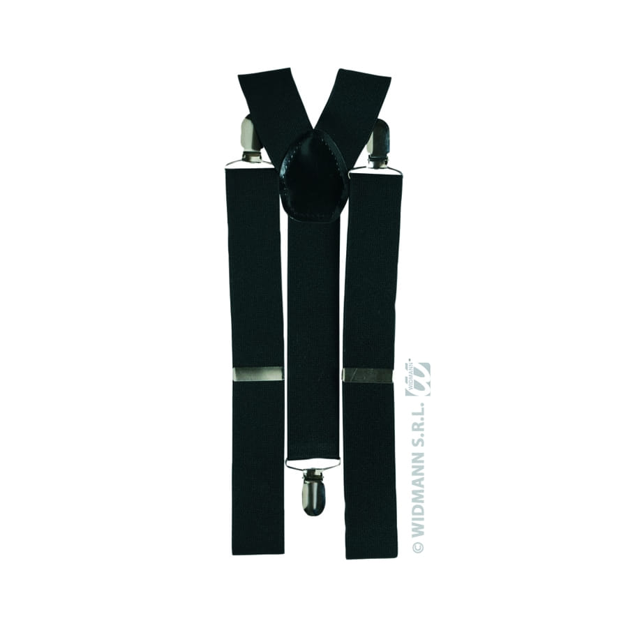 Paire de bretelles de couleur noire en matière élastique. Cet accessoire peut convenir à un déguisement de gangster ou d'agent secret.