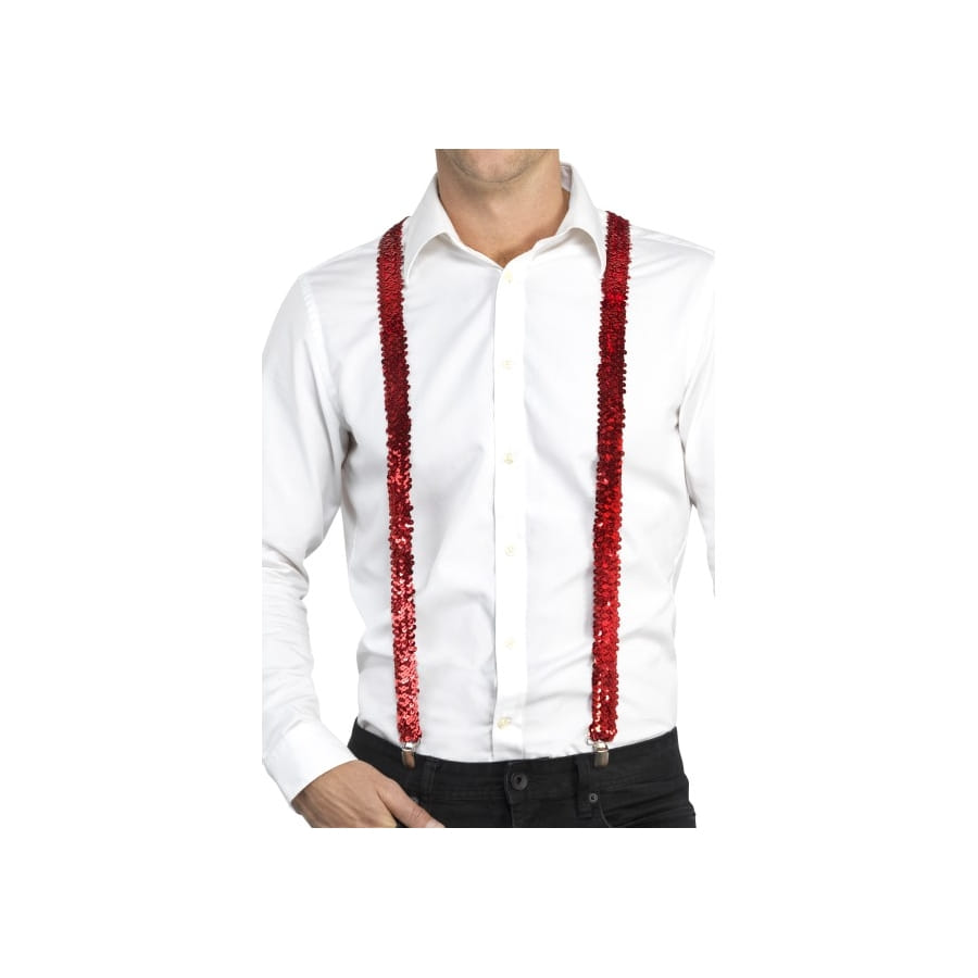 Mesdames et Messieurs, offrez un petit côté glamour à votre tenue avec ces bretelles rouges à sequins. Elles sont assez simples mais complèteront parfaitement votre costume pour un évènement sur le thème Cabaret, Disco ou Années Charleston. Pour ces dames, des chaussures à talons rouge seraient conseillées pour uniformiser le tout.